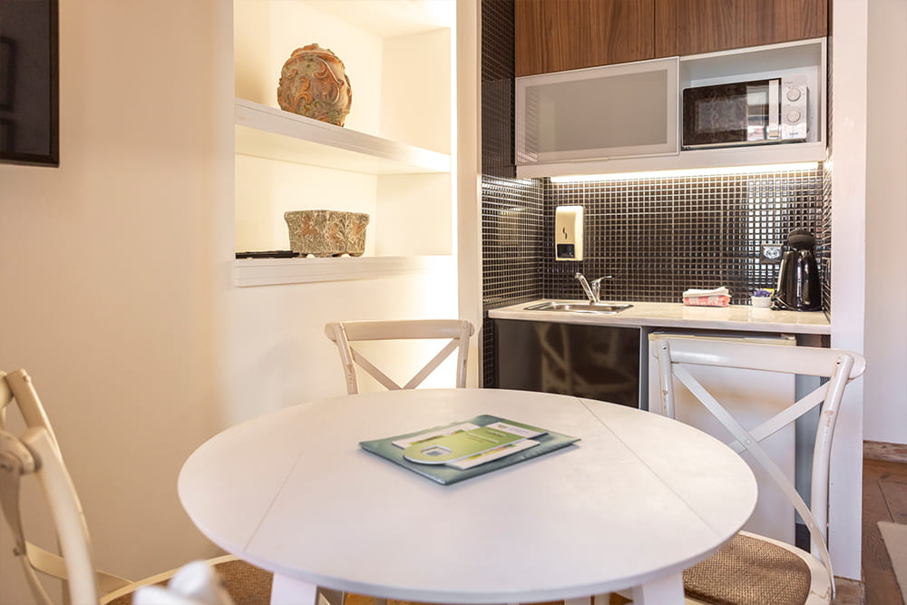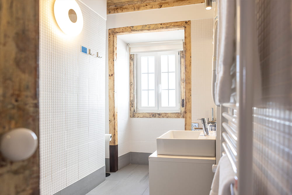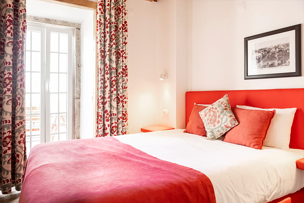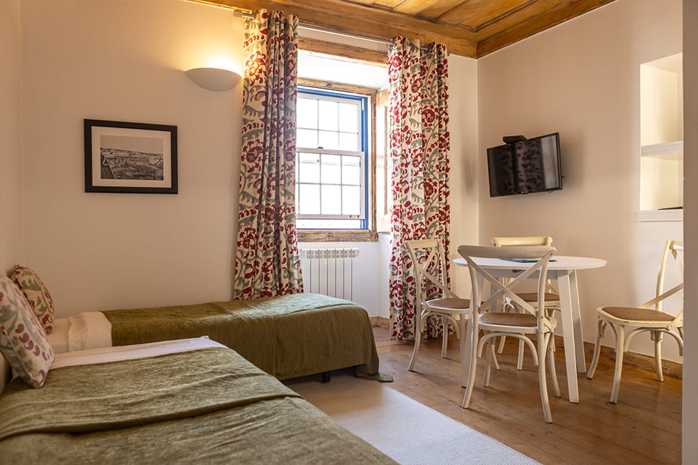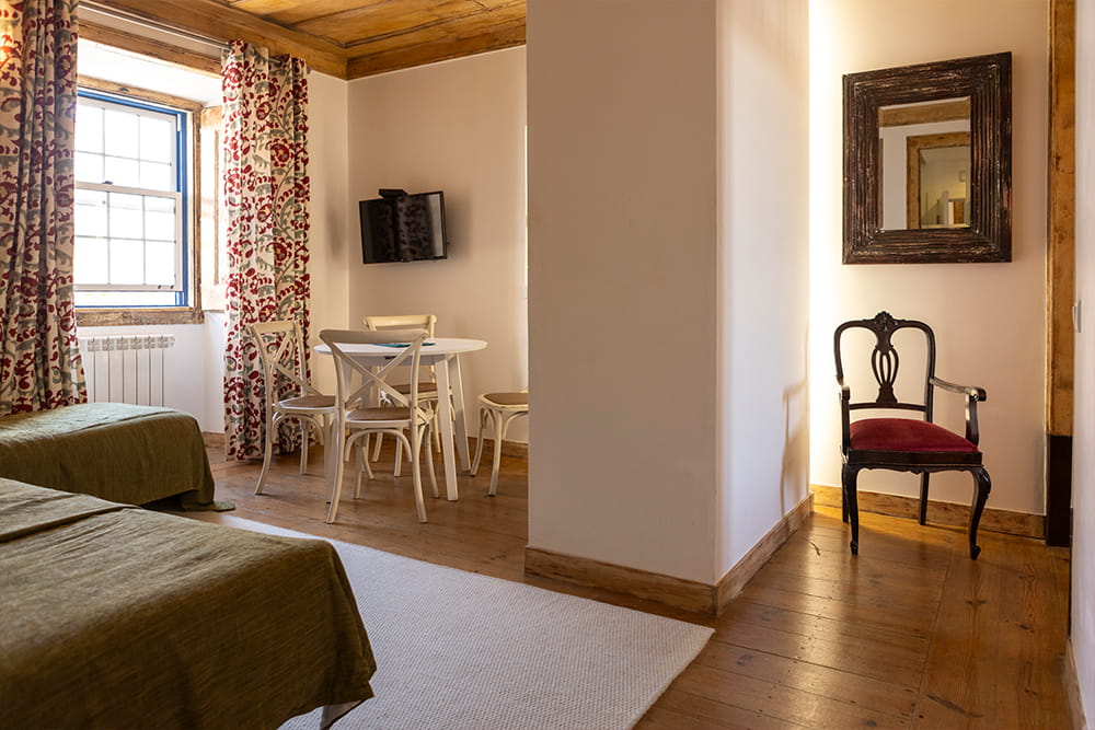 Os quartos mais espaçosos da Casa das Aguarelas, ideal para famílias. Para além de uma área de estar com TV de ecrã plano, poderá usufruir de um apoio de cozinha equipado, perfeito para preparar pequenas refeições.